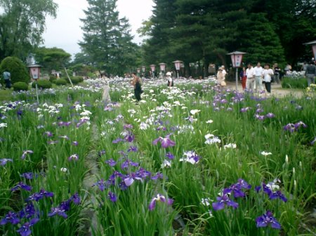 ←この写真は山形のあやめ園です やはり二つ並べて見ると菖蒲との違いが・・・ でも、一つ一つを見ると同じに見えましたね。 |