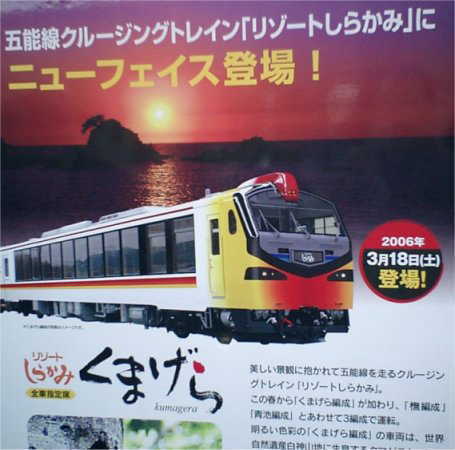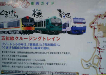 五能線は秋田県の東能代駅から 青森県川部駅までの147.2キロを結ぶローカル線です。 僕らは途中十二湖で下車しました リゾートしらがみ「くまげら5号」がホームに入り これからくまげらと56分の旅が始まります。 ![]() |