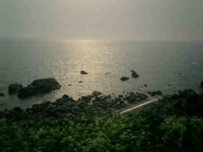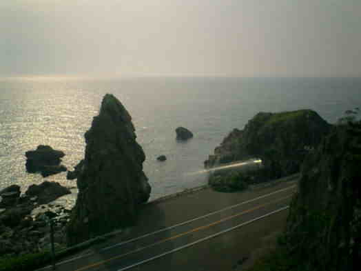 海岸線の景色を眺めながら次の地点岩崎地区へ