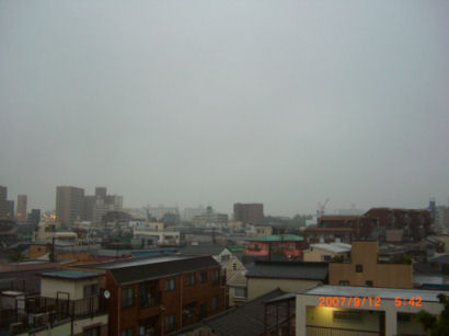 今朝は台風通過で風が強く雨も止んでいません、午後には晴れるとの事。