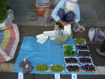 上越・高田市内の朝市 なす・枝豆・ピーマン等野菜物がいっぱいでした。 ![]() |