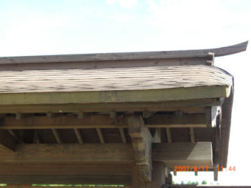 唐門の中央部が弓型の曲線に 写真の撮りかたが悪かった。右側の屋根を見てね。 ![]() |