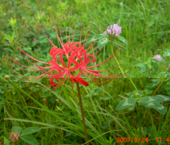 24日散歩の途中に見つけました。赤い彼岸花![]() |