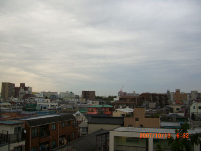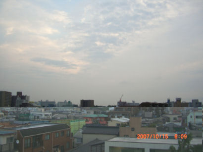 今朝の6時チョット前の天気です。きょうも秋空になりそうです。