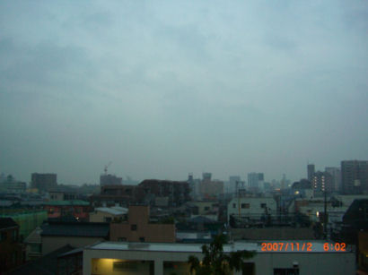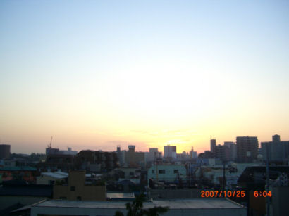 今朝の夜明けは遅いです、日一日少しずつ遅くなってます。