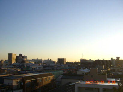 今朝は晴れました、遠くに朝焼けが見えています。