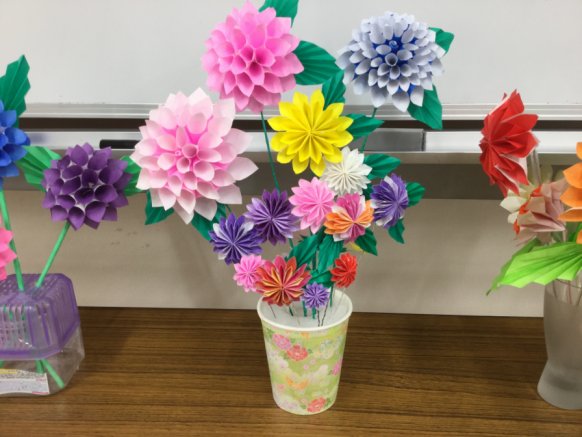 | 2018年08月05日(日曜日)曇り時々晴れ 最高気温34.7.度 きょうの折り紙サロン27名参加してくれました。 折り紙が好きな人は休まないのですね、 でも、ふれあいセンターへ行くのが暑くてたいへんなんです。 下の写真は皆さんが作ってくれた作品です きょうのリハビリ散歩は休み。 |