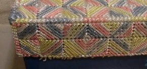 | 2018年07月28日(土曜日)曇りのち雨 最高気温29.0.度 今朝は雨も降らず涼しい風が吹いていましたが正午過ぎに雨になりました。 予報では台風が接近してるとの事、こんな日は家にいるのが一番、 木曜日に買った、メタリックヤーン 下の写真のようなものを作りました。 何が出来るかは秘密にしておきますね。 きょうはリハビリ散歩も、買い物散歩もなし |