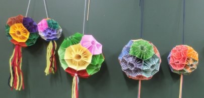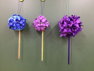 一番左は丸くならず、真ん中のくす玉は 花びら5枚に、右のくす玉はなんか変 正確にするにはもう少し勉強しなくちゃ |