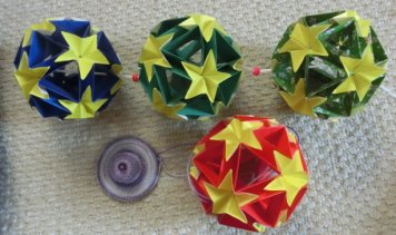 スターボール4個出来ました。 8月5日に行います。 折り方は凄く簡単ですが組み立てが 非常に難しいです。 |