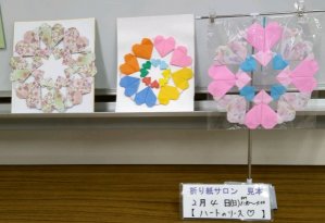 | 2024年02月04日(日曜日) 雨のち曇り 江東区の最高気温7.4度 ふれあいセンターの折り紙サロンに行って来ました。 今日のお題はハ−トのリ−スです。 左側はボランテア先生の作品です、 |